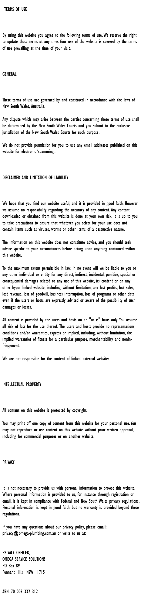 When you want great service for your plumbing, drains and hot water in Sydney, you'll be delighted with the Omega Plumbing commitment to provide you with the friendliest and most professional plumbing experience in NSW.